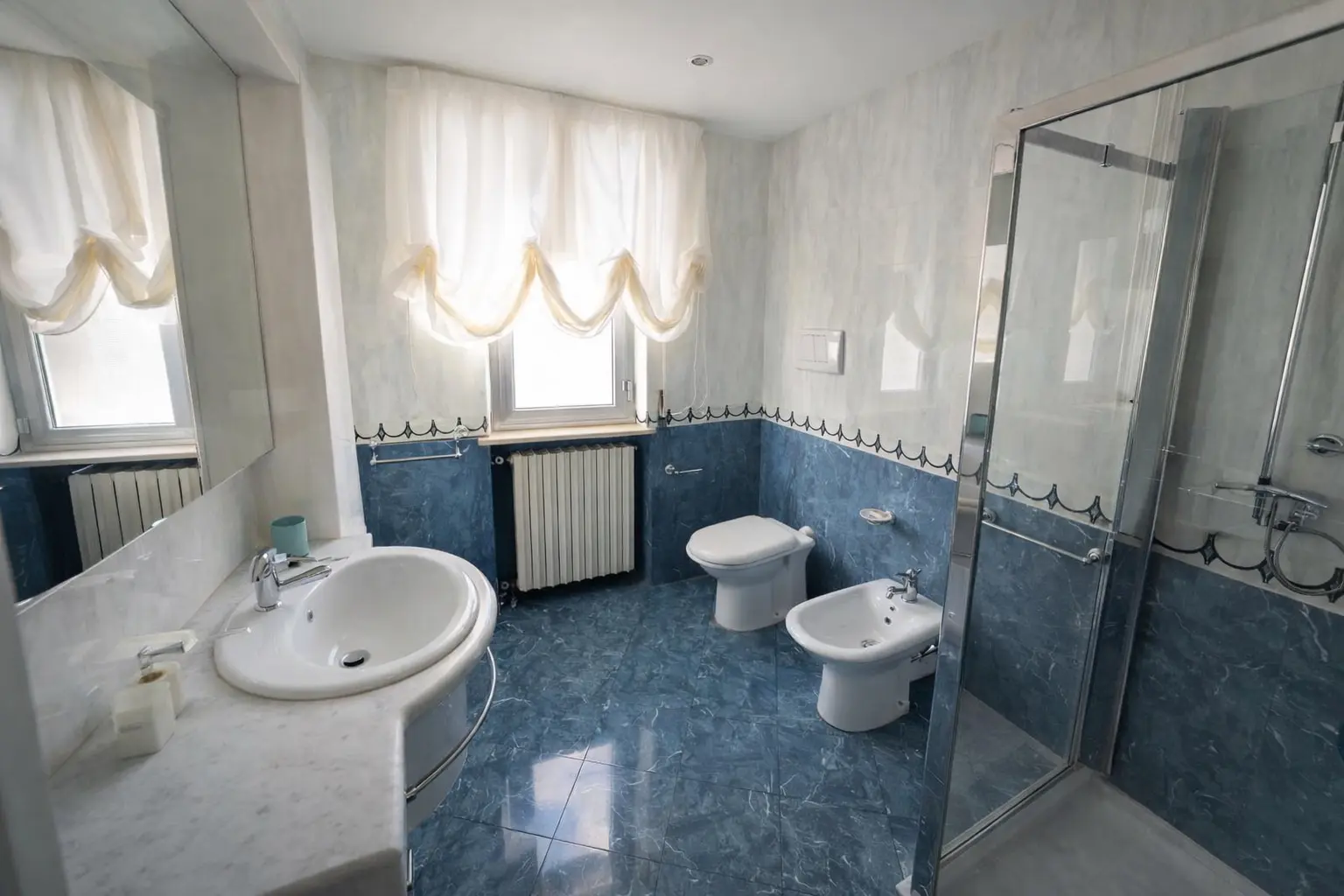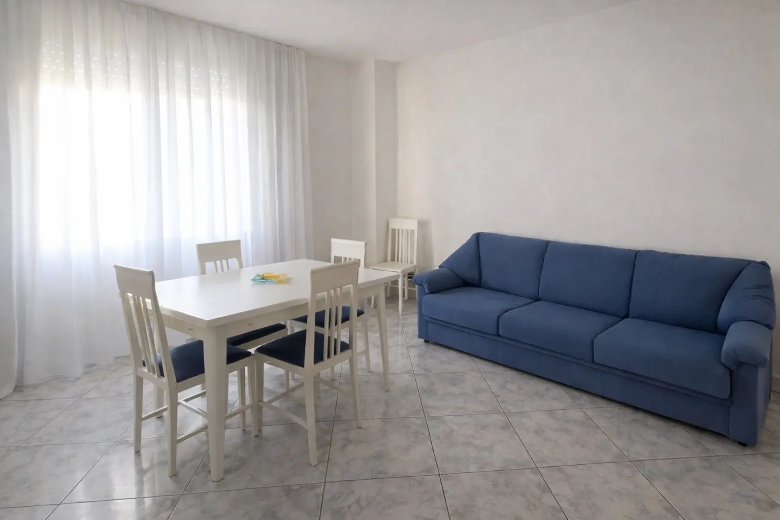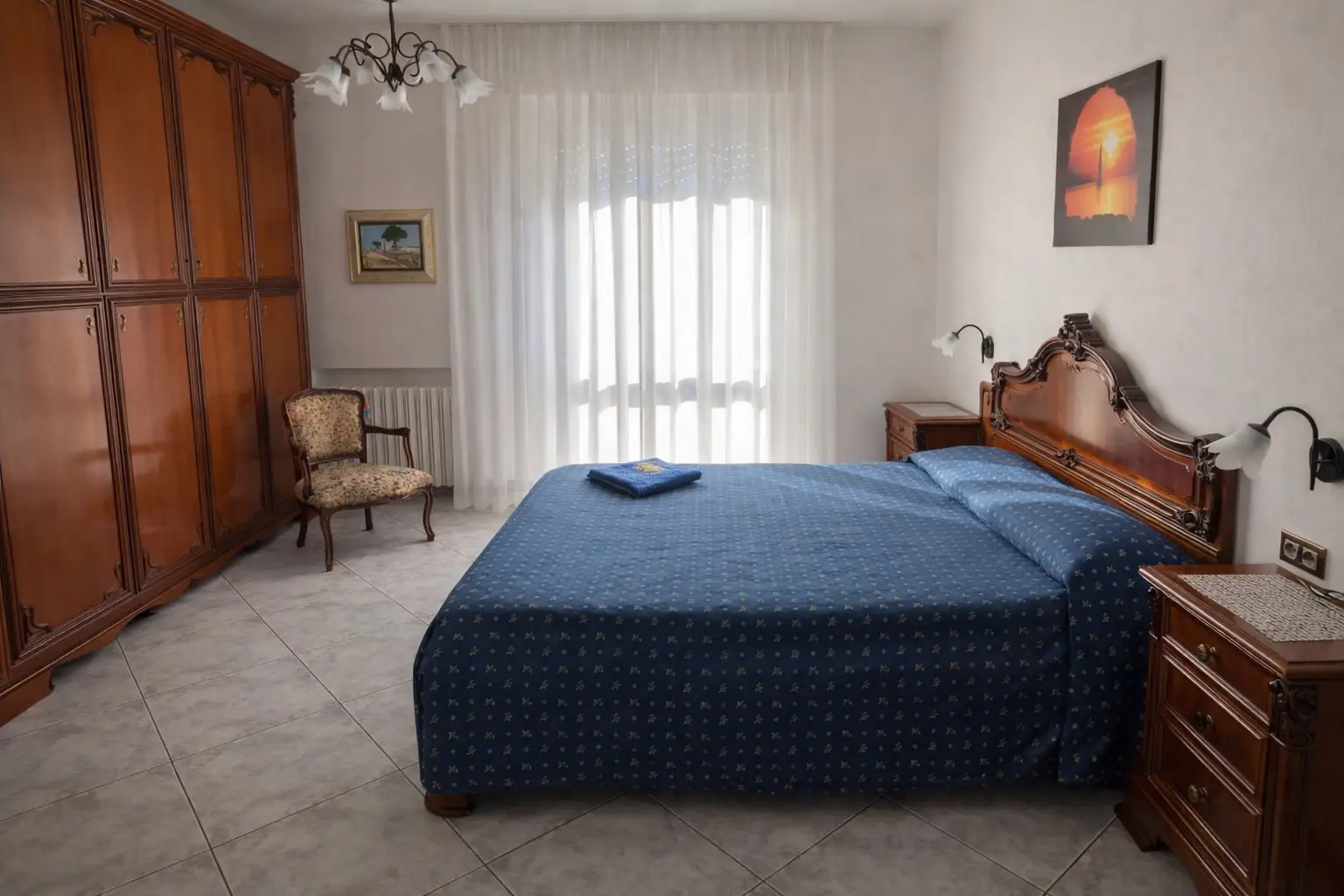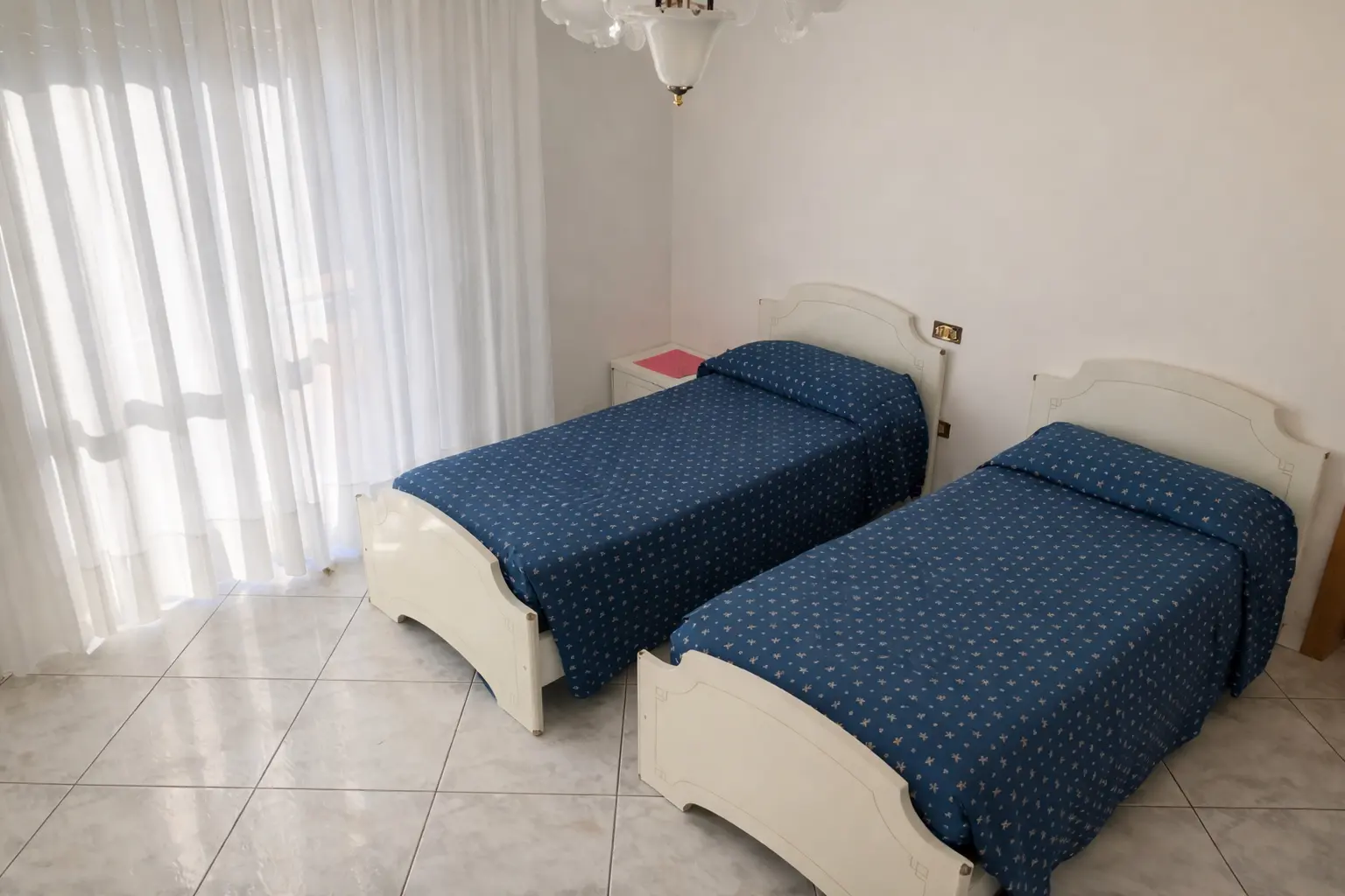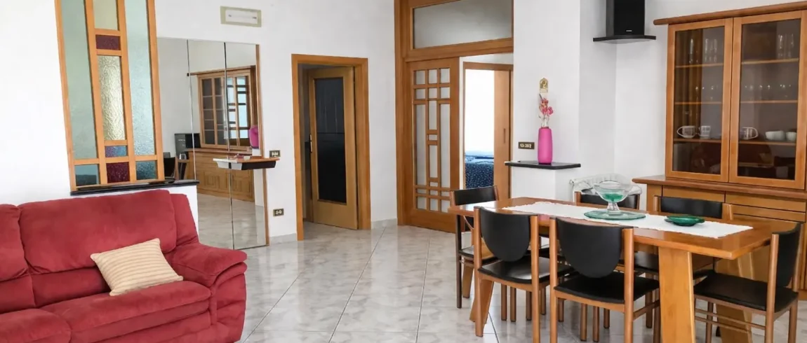 Appartamento moderno di circa 100mq a 50 metri dall’Hotel. Si trova al primo piano ed è così composto: ingresso, ampio soggiorno, divano, TV, WIFI, cucina (angolo cottura, forno, frigorifero) con divano, 1 camera matrimoniale, 1 camera con possibilità fino a 3 letti, balcone, aria condizionata. Capienza massima fino a 6 persone.